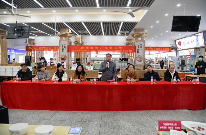 谢瑞瑾代表校党委向全校广大妇女同胞致以节日的问候和良好的祝愿。他表示,这场厨艺大赛不仅是一场风味佳肴的盛宴,也是一次日常美学的展示和交流。美食凝聚了选手们对健康美食的追求,是与美好生活的对话,是“她力量”在一饮一啄中淋漓尽致的展现。他高度肯定了我校妇女事业的“半边天”作用,希望广大女教职工在校党委的坚强领导下,继续以巾帼不让须眉的豪情和实干,在新征程广阔天地建功立业,续写荣光。