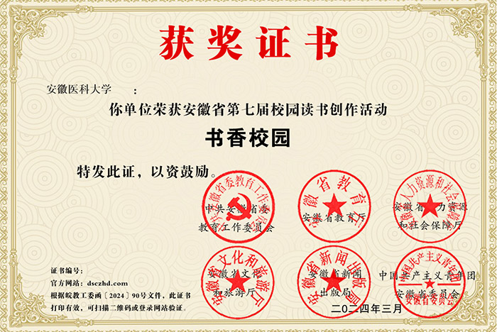 3月26日,由省委教育工委、省教育厅、省人力资源和社会保障厅、省文化和旅游厅、省新闻出版局、团省委共同主办的安徽省第七届校园读书创作活动结果揭晓,我校获评安徽省十佳“书香校园”和校园读书创作活动先进单位,报送的“读书季”系列活动获评十佳“优秀阅读推广项目”,学校师生在其他各类创作活动中累计获奖48项。