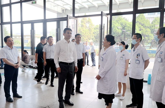 5月24日上午,校党委书记王琦,校党委常委、副校长徐朝阳前往附属巢湖医院,实地参观调研医院急诊科、一站式综合服务中心、高压氧治疗中心、临床技能培训中心等地,听取医院发展情况专题汇报并与院领导班子成员座谈。