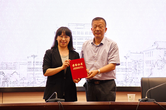 6月7日,中国出版集团•中国大百科全书出版社三版专题中心主任程广媛做客我校医学与人文大讲堂,作题为《新时代百科全书的高质量发展路径》的专题报告,为师生代表解读中国大百科全书建设与发展历程。活动前,校党委书记王琦会见程广媛,并代表学校与其互赠礼物。副校长肖圣龙主持报告会,并代表学校向程广媛颁发“医学与人文大讲堂”纪念证书。