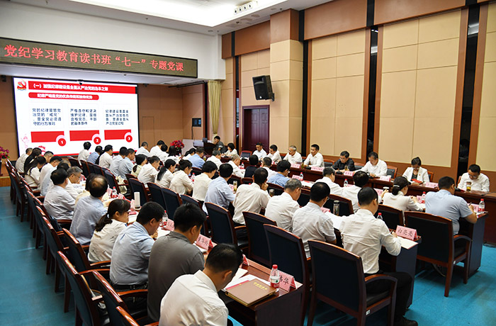 王琦为党纪学习教育读书班讲授“七一”专题党课,从党和国家事业全局、高等教育事业发展、学校自身发展等多个角度出发,阐释了深入贯彻落实中央、省委相关部署要求,推动全面从严治党向纵深发展、加强纪律建设的重大意义,并结合医学院校实际,逐一阐明15项主要违纪风险点。