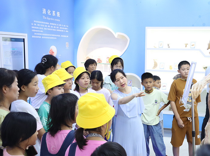 活动安排了安徽省话剧院以及我校人体科学馆、省红十字应急救护培训安医大工作站三个研学教育基地。人体科学馆分为生命之源、生命之本、生命之后等13个展区,陈列着近千件人体标本。黄泊渡村和泽沟村的孩子和家长们在志愿者的引导下,参观了解人体构造相关的科学知识,配合生动的讲解,深入了解生命孕育的艰辛,人体形态结构的精妙。“人体科学馆像是一本立体生命之书,带领我们探索人体结构的奥秘和真谛,让我们学到了很多课本上学不到的知识。”黄泊渡村小学生冯岩说道。