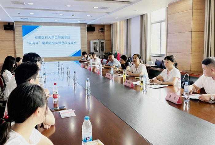 校团委、口腔医学院相关负责人以及实践团师生参加座谈交流。(口腔医学院 丁玲)