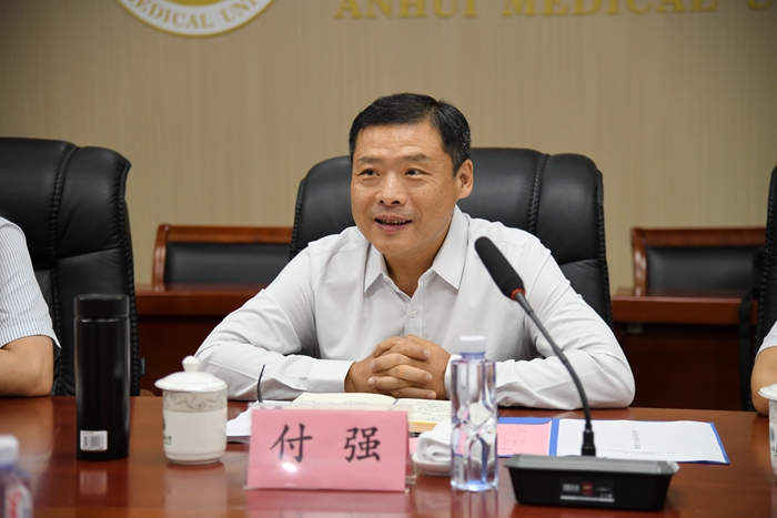 付强对学校的热情接待表示感谢,对学校发展取得的各项成绩和进步表示赞赏。他简要介绍了国家卫生健康委卫生发展研究中心的历史沿革以及中心与安徽医改和学校的历史渊源,并对卫生管理学院在医药卫生体制改革研究中作出的积极贡献表示肯定。他希望学校及学院继续发挥自身优势,为深化医改提供更多理论支持和实践指导。