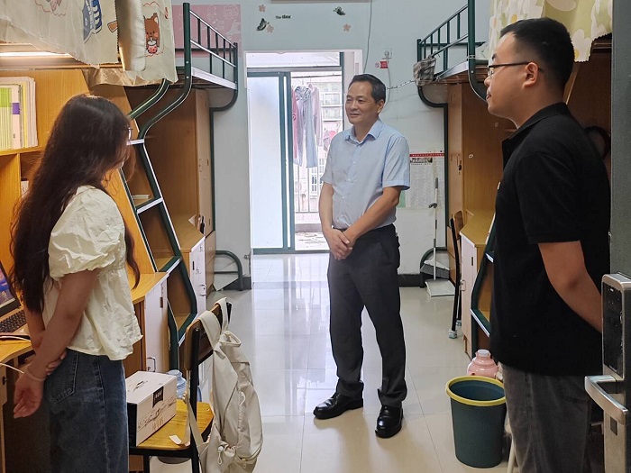 8月28日,公共卫生学院党委书记马军成带队,深入宿舍开展走访慰问活动,全面关怀学生思想学习动态和新学期规划。