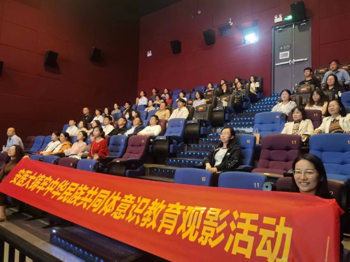 此次活动是我校今年铸牢中华民族共同体意识教育系列活动之一,学校70名党员干部参加观影。(统战部)