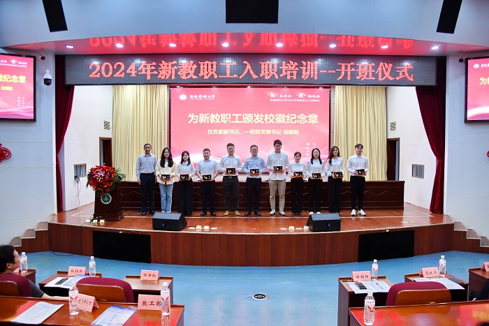 10月18日,学校举办2024年新教职工入职培训开班仪式,校党委副书记、第一附属医院党委书记徐朝阳出席仪式,并为新进教职工代表颁发校徽纪念章。