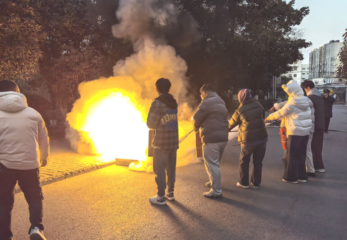 灭火实战演练中,保卫处工作人员结合实物介绍了干粉灭火器的工作原理,并亲自演示如何快速有效地将燃烧的火焰扑灭。随后,参加演练的师生在指导下正确操作灭火器,分批次有序地对模拟火灾现场的着火点进行扑救,掌握干粉灭火器的正确使用方法和灭火技巧。