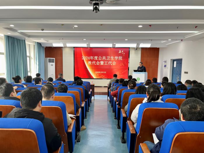 学院领导班子成员、教代会委员、工代会委员及全体教职工参加会议。(公共卫生学院 徐紫菡)
