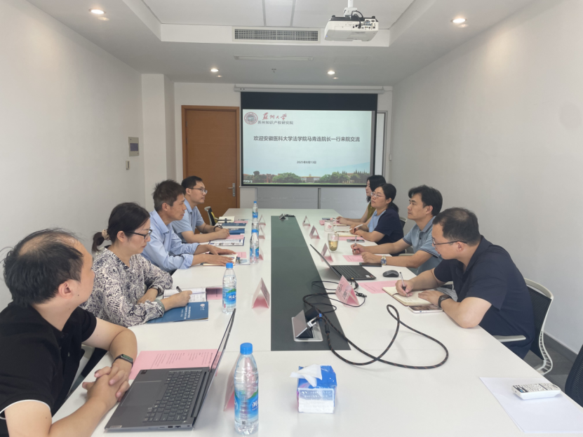 西南政法大学知识产权研究中心、民商法学院(知识产权学院)以及苏州大学知识产权研究院负责人分别介绍了该校在知识产权学科建设等方面的情况,并对我校特色化的知识产权办学方向及建设成果给予肯定,表示愿同我校法学院在学科建设、人才交流等方面加强合作,通过优势互补、协同创新,共同为国家知识产权事业高质量发展贡献力量。